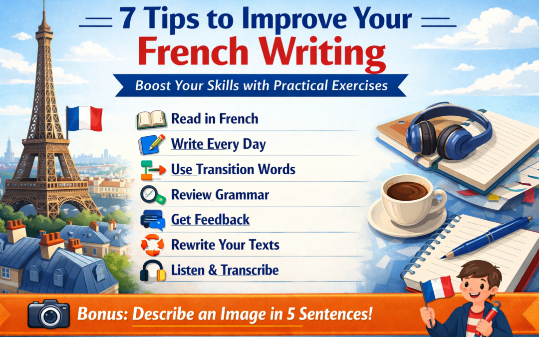 With the right techniques, you can quickly improve your clarity, grammar, and confidence. Below are 7 practical tips that will help you write better in French, along with simple exercises you can use immediately.