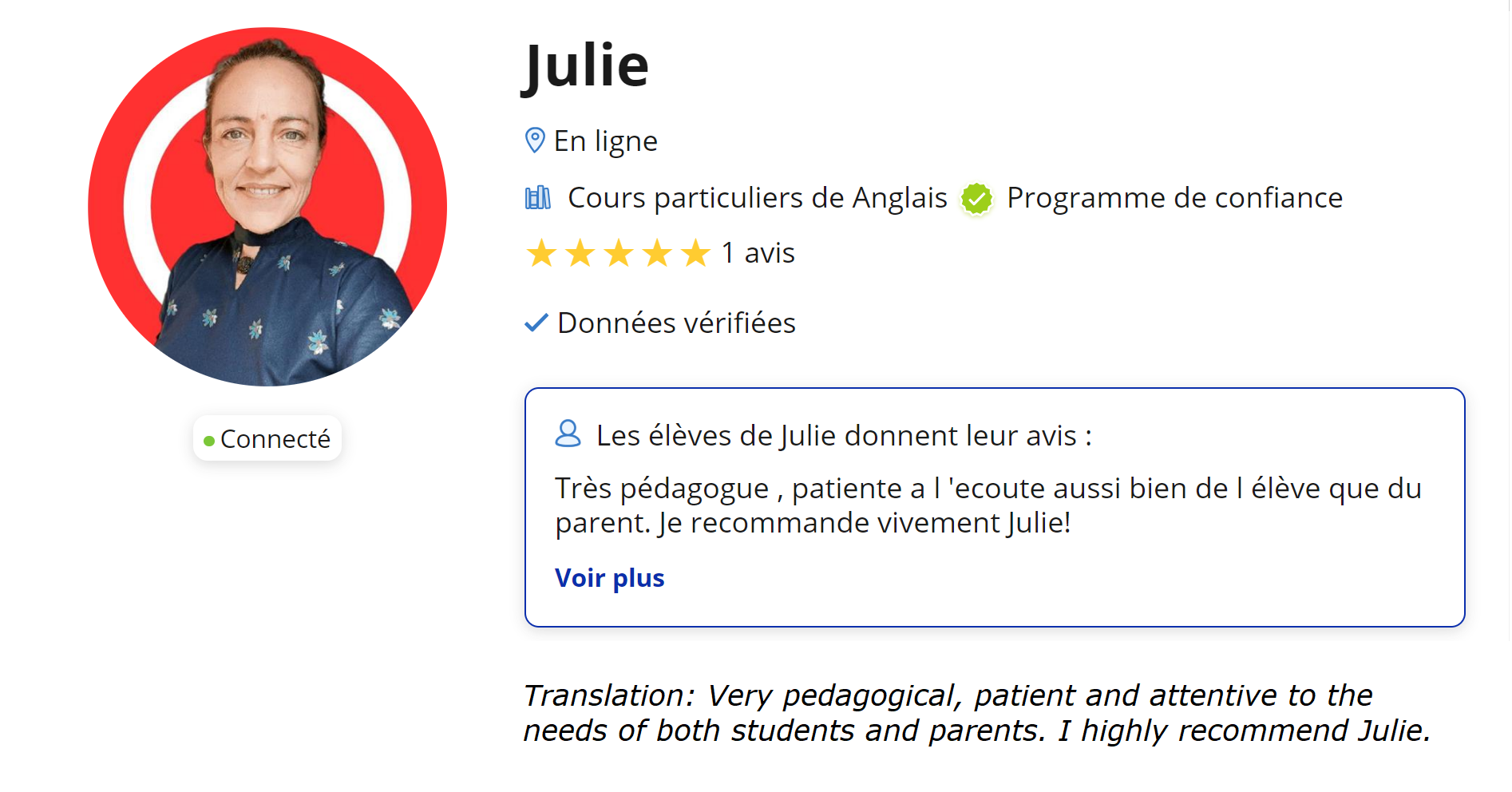 I am Julie, an english and French Teacher, coach specialized in emotion management. My professional journey began in 2015 as a teacher for the Loire-Atlantique Regional Council. My empathy, sensitivity and dedication are assets that enable my students to excel.